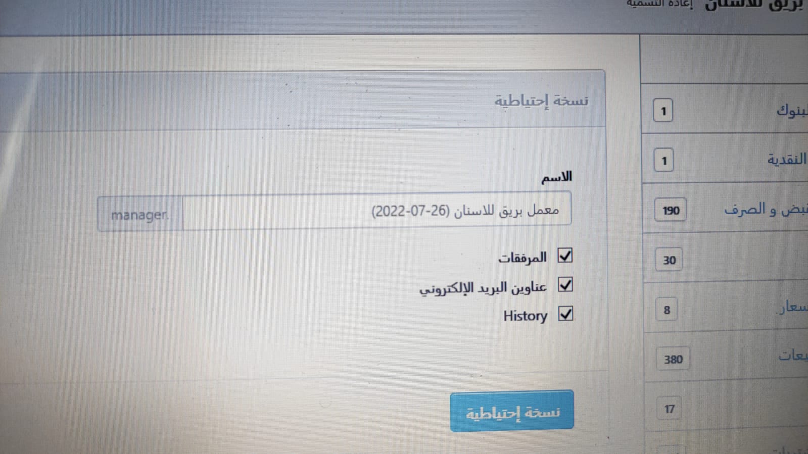 هذه الخاصية لم تنقل اصناف المخزون بالنسخة الاحتياطية