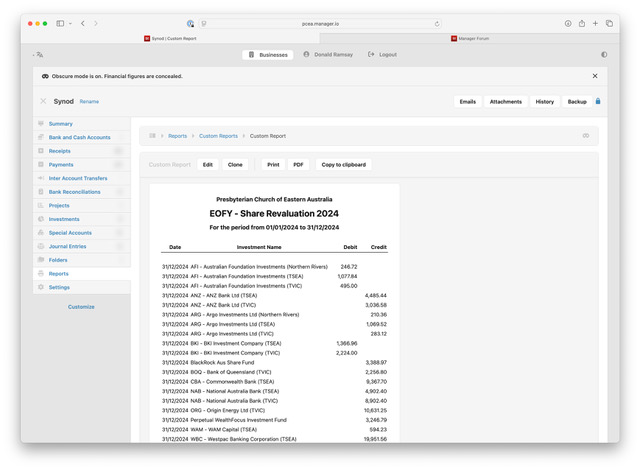 While it is not an issue for me, the obscure mode appears to work everywhere except within Reports.