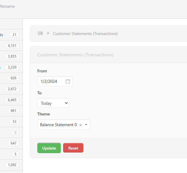 In Manager, setting a custom period or changing the theme on the Customer Statements (Transactions) Report incorrectly redirects the user to the Summary page. In contrast, the Customer Statements (Unpaid Invoices) Report correctly remains on the same report page after the same modifications, this can be frustrating sometimes I hope it will be fixed.