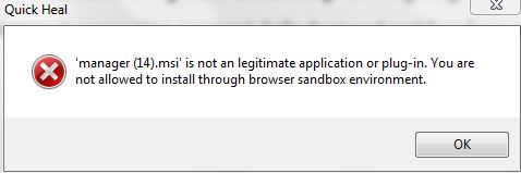 Now Quick Heal allows to run the installation file… but some other Error Started.