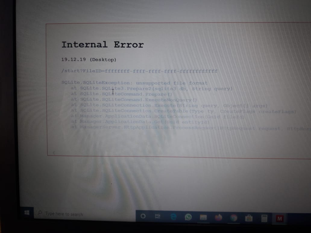 Actually At first i install manager in my laptop and for few month all was perfect …i made all my invoices in manager desktop version…few day ago i transfer my all manager data to pendrive, deleted all my manager data from laptop… but the day after tommorrow when i pluged my pendrive in my laptop to make invoice…the data was not opening and shows the picture i send u